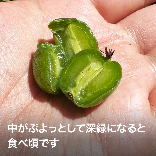 毎日食べ頃まで観察して育つのを見守れる贅沢な果実です。追熟させ食べ頃になると、表面の皮がカボチャの皮のようにプヨプヨしてきますので、軽く洗ってそのままパクっとお召し上がりください。