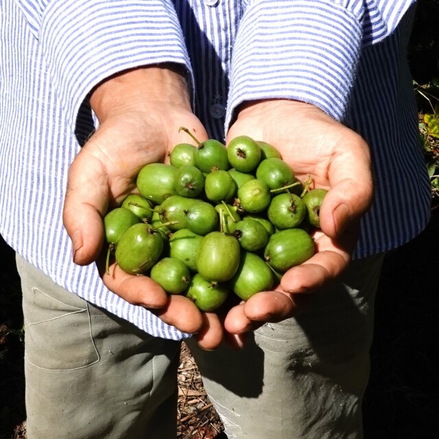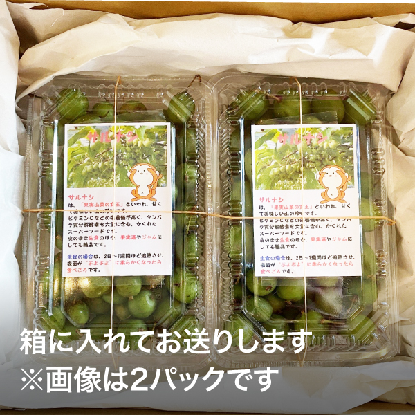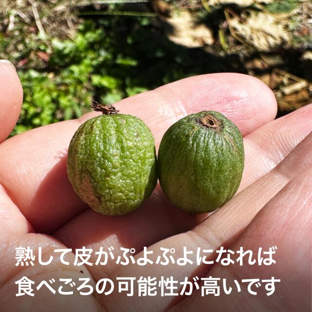 サルナシは、ツル性の本木に実る、キウイフルーツの仲間の野生果物種です。「猿が美味しくて食べて無くなってしまう」も語源のひとつであるように(諸説あり)、熟した実はキウイのような香りと、濃厚なコクと甘みと酸味が楽しめます。