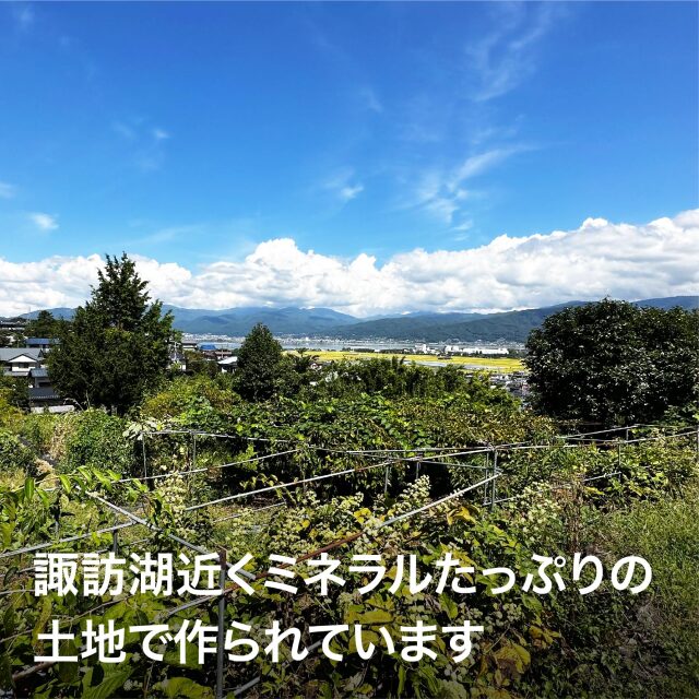 八ヶ岳の対面、諏訪湖を望む西山地区で10年ほど前にサルナシの木を導入。試行錯誤を続けて近年ようやく希望される方にお分けすることができるようになりました。農園の基本方針に従い、庭木の剪定した枝などの木材チップを主体とする有機肥料を使用し、消毒なしで育成しています。畑はフカフカの土で微生物が伸び伸びと生活していて木々たちも嬉しそうに育っています